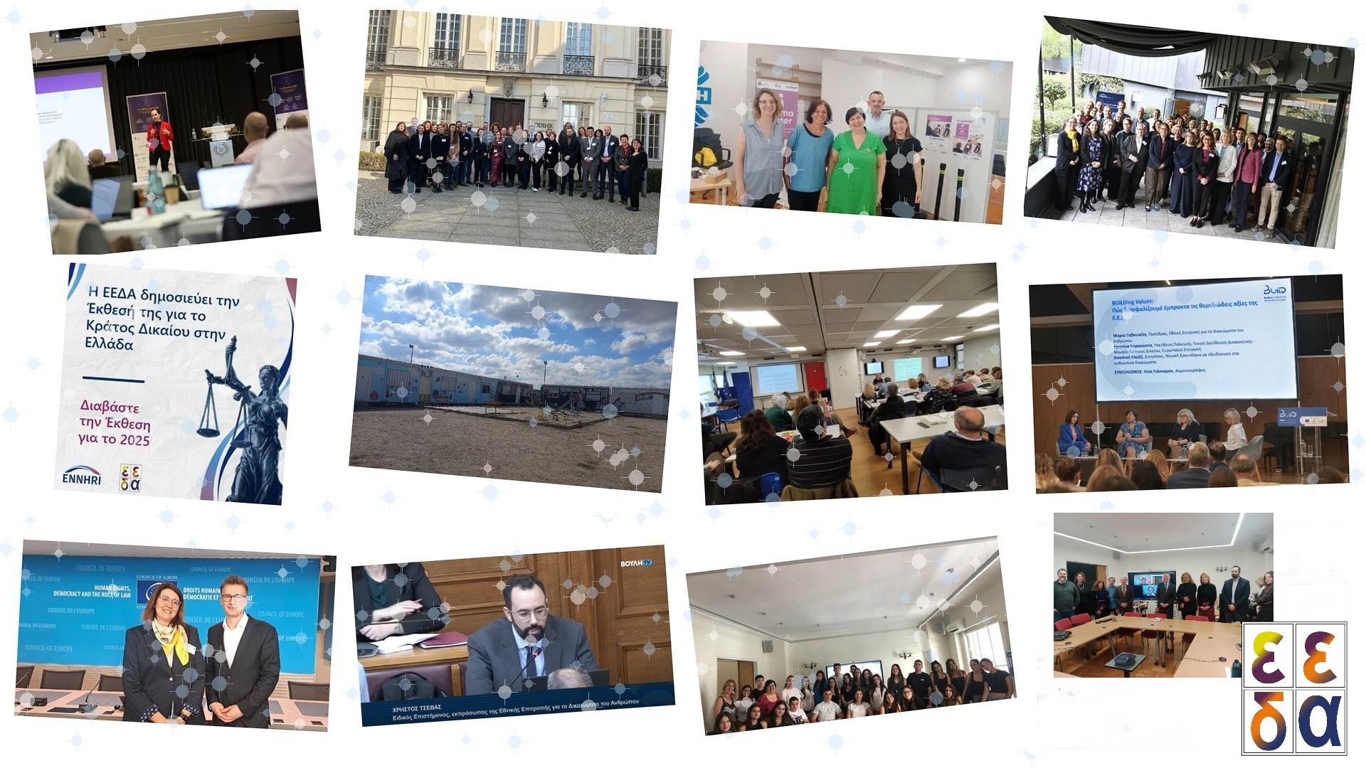 Το 2025 ήταν για την Εθνική Επιτροπή για τα Δικαιώματα του Ανθρώπου - ΕΕΔΑ ακόμα μια χρονιά γεμάτη δράσεις, πρωτοβουλίες και παρεμβάσεις για την προστασία και προώθηση των ανθρωπίνων δικαιωμάτων. Με συνέπεια στον θεσμικό της ρόλο, ως συμβουλευτικό όργανο της Πολιτείας και Εθνικός Θεσμός για τα Δικαιώματα του Ανθρώπου, η ΕΕΔΑ βρέθηκε στο πεδίο, ενίσχυσε τη συνεργασία της με φορείς της Πολιτείας και της Κοινωνίας των Πολιτών, πραγματοποίησε ακροάσεις φορέων και εκπαιδεύσεις και συμμετείχε σε δράσεις ενημέρωσης και ευαισθητοποίησης. Πραγματοποίησε δημόσιες παρεμβάσεις, τοποθετήθηκε σε συνεδριάσεις Επιτροπών της Βουλής και έδωσε στη δημοσιότητα Εκθέσεις Αναφοράς και Δηλώσεις για καίρια ζητήματα δικαιωμάτων. Εκπροσώπησε την Ελλάδα σε συναντήσεις, συνεδριάσεις και ομάδες εργασίας του Ευρωπαϊκού Δικτύου Εθνικών Θεσμών Ανθρωπίνων Δικαιωμάτων (ENNHRI - European Network of National Human Rights Institutions) και συμμετείχε σε εκδηλώσεις και εκπαιδεύσεις διεθνών οργανισμών όπως του Οργανισμού Ηνωμένων Εθνών, του Συμβουλίου της Ευρώπης, του Οργανισμού Θεμελιωδών Δικαιωμάτων της Ε.Ε. και του Γραφείου Δημοκρατικών Θεσμών και Ανθρωπίνων Δικαιωμάτων του ΟΑΣΕ.