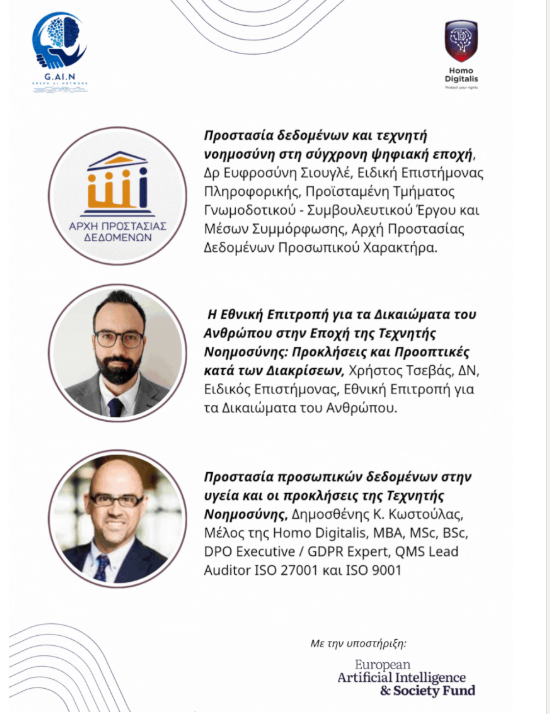 The Greek National Commission for Human Rights (GNCHR) participated on Thursday 18 December 2025, in the Educational Event of the Greek AI Network (GAIN) and Homo Digitalis on Artificial Intelligence. The event was organized with the aim of involving civil society organizations interested in the protection of human rights in the era of artificial intelligence.