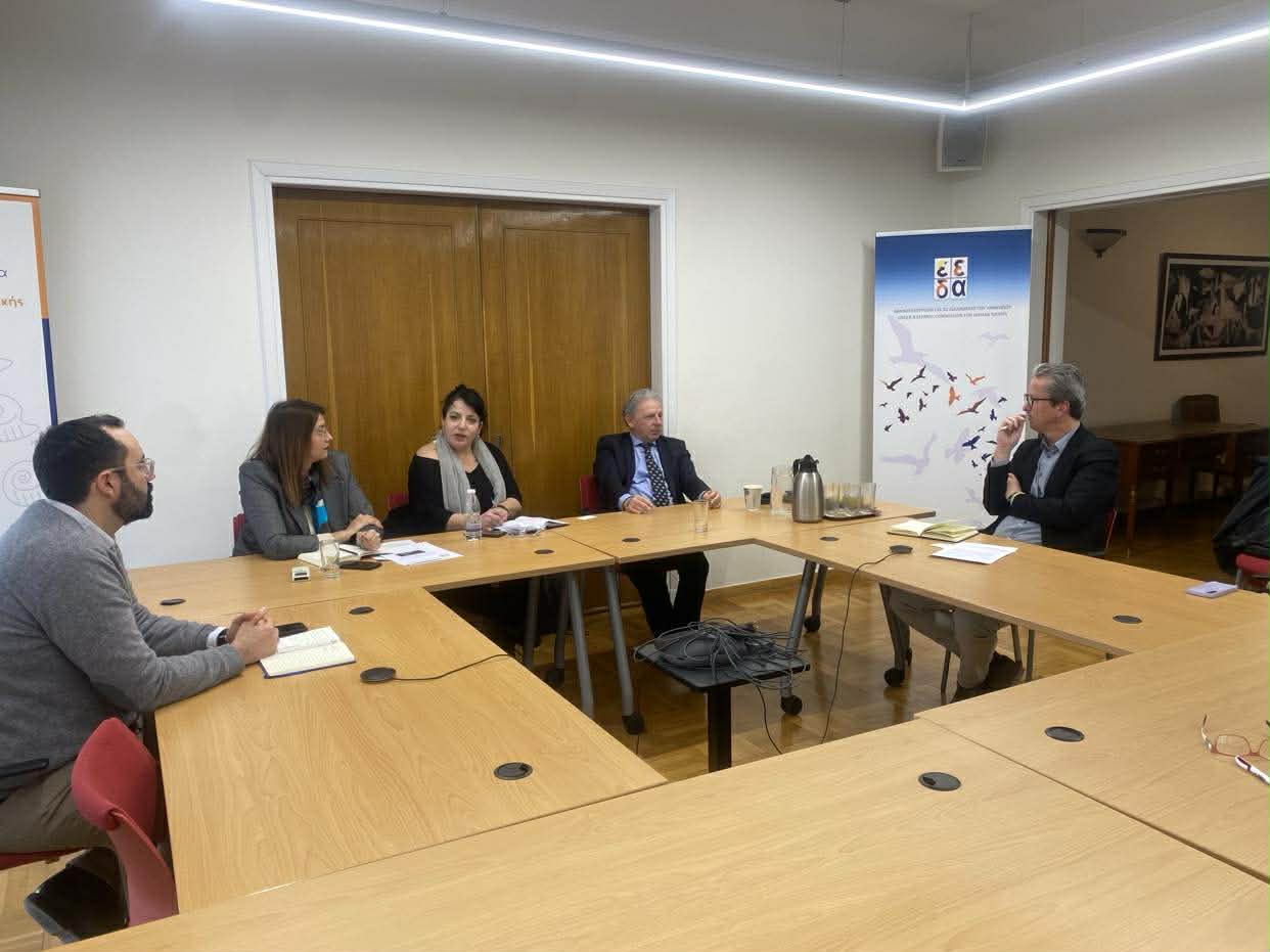 Με τον Πρόεδρο της Διεθνούς Ομοσπονδίας Δικαιωμάτων του Ανθρώπου – FIDH (International Federation for Human Rights), κ. Alexis Deswaef, συναντήθηκαν την Πέμπτη 19 Φεβρουαρίου 2026 οι Αντιπρόεδροί της Εθνικής Επιτροπής για τα Δικαιώματα του Ανθρώπου (ΕΕΔΑ), κ. Γιάννης Ιωαννίδης, Α’ Αντιπρόεδρος και κα Έλλη Βαρχαλαμά, Β’ Αντιπρόεδρος, η Συντονίστρια του Επιστημονικού Προσωπικού, κα Εύα Τζαβαλά και ο Ειδικός Επιστήμονας, ΔΝ κ. Χρήστος Τσεβάς. Στη συνάντηση παραβρέθηκε ο κ. Λευτέρης Παπαγιαννάκης, Πρόεδρος της Ελληνικής Ένωσης για τα Δικαιώματα του Ανθρώπου (ΕλΕΔΑ) και η κα Κατερίνα Νούμτα Επιστημονική Συνεργάτιδα της ΕλΕΔΑ.